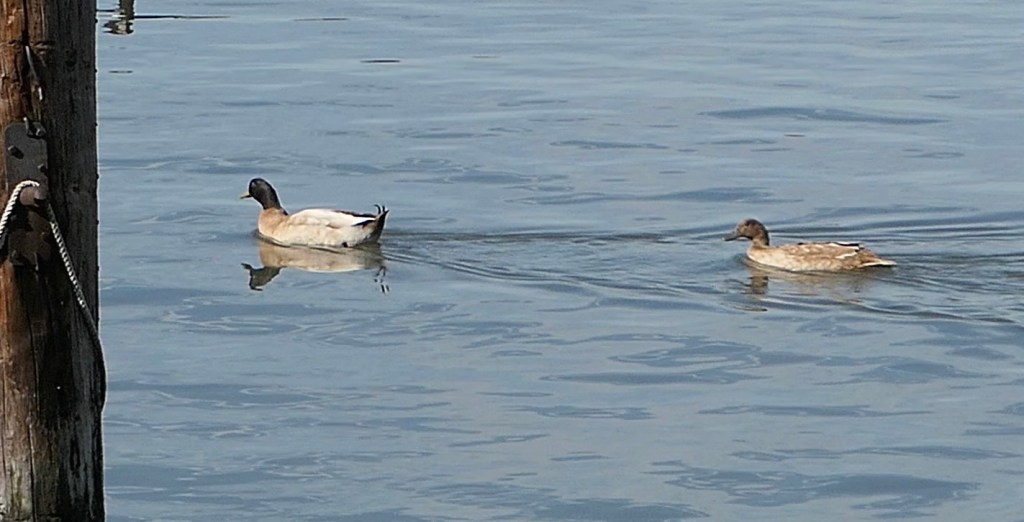 These residents of the 79th Street Boat Basin are not Mallards. I’m told by Manhattan Bird Alert that they are hybrid domestic birds, not wild breeds at all, probably released into the wild some time ago. They have apparently made their home at the boat basin for years, but with all the boats now gone, I wonder if they are able to get enough food. Hope they make it, there won’t be boats back on these docks for years and there is a lot of construction heading their way.