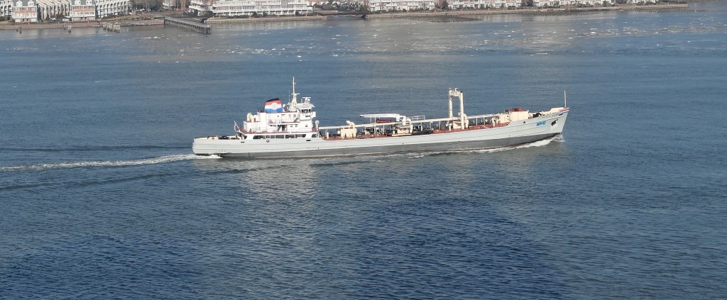 The DEP tanker North River travelled up the Hudson Wednesday morning, having begun the day at the Bowery Bay treatment plant in Queens. The tanker stopped at the North River plant on the Hudson at 140th Street to deliver sludge, and then proceeded to the Passaic Valley Sewage Commission’s dock in Newark, presumably to deliver some more.