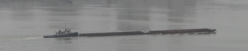 Tanker traffic was light on the North River on Tuesday, but two tugs pushing hopper barges north did come through.