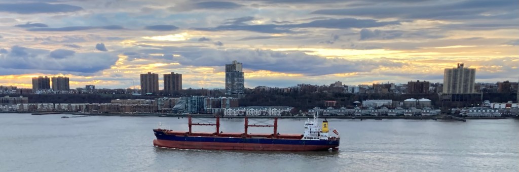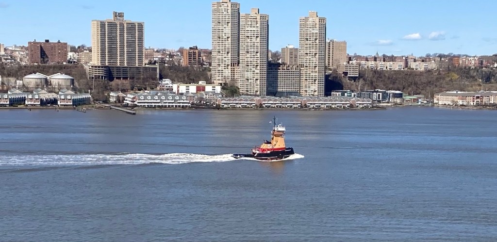 Monday morning saw a fairly crowded river, with four tugs at anchor, including the long-term resident Teresa, the Saint Emilion, and the Ruth and Dean Reinauer AT/B combinations. By late morning, Saint Emilion was on her way to load new cargos in the Arthur Kill and Port Newark.