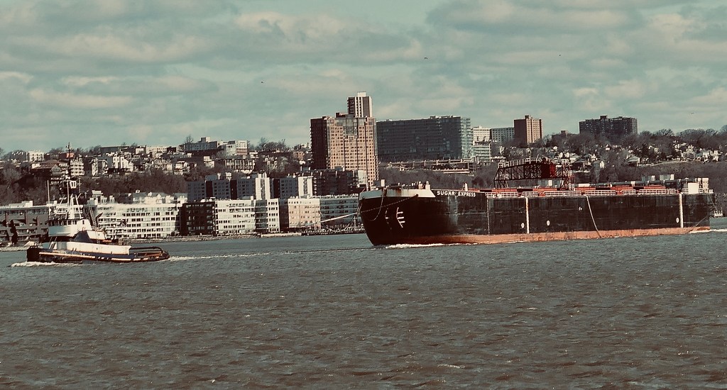 The Dann Brothers’ Carolina Coast came through in the morning, towing an empty Sugar Express barge from the Yonkers Domino plant into the flood tide heading back to Palm Beach to load up on more raw sugar.