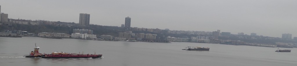 Weather steadily deteriorated into the afternoon. Dann Marine’s Coral Cost, which started the day in Flushing Bay, came through with an empty cement barge heading back to the Lafarge plant in Ravenna and overtook the Evelyn Cutler pushing product loaded in Cateret towards Albany.