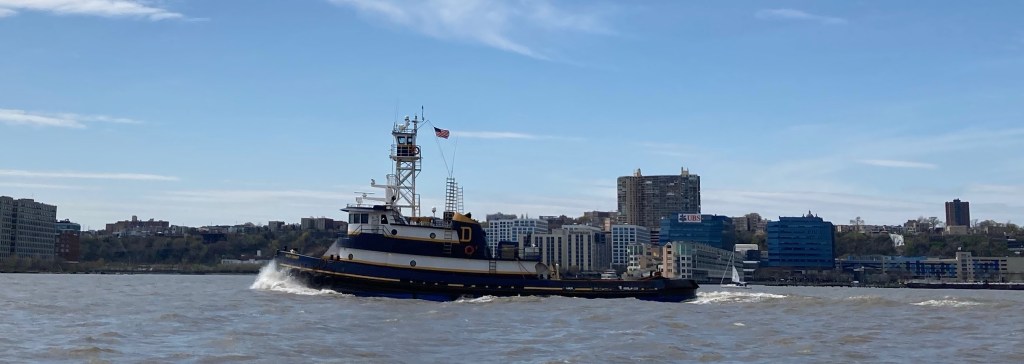 Beautiful spring weather, though still chilly on the water Saturday. Activity is picking up, with more recreational boaters and dinner cruises starting up, and a steady flow of barges heading to the dredging operation at Pier 88/90.