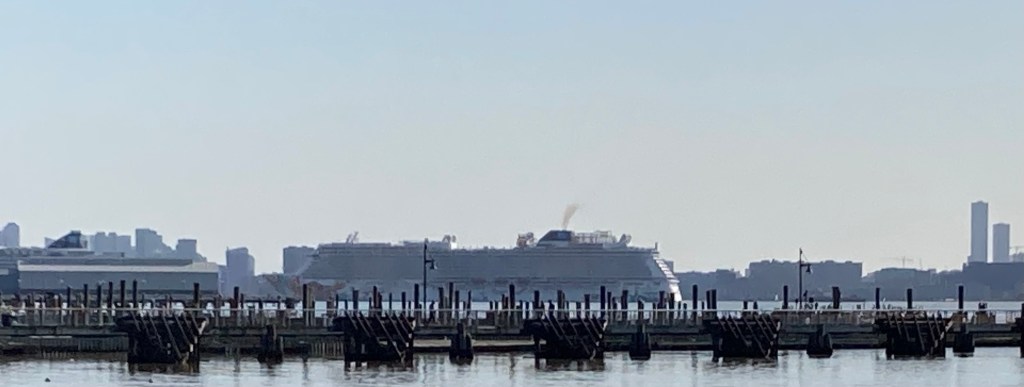 The dredging operations at the passenger ship terminal moved aside on Sunday and were replaced by two Norwegian ships and the smaller Ocean Explorer cruise ship. The Norwegian Gem and Getaway were both in port Sunday morning, and were heading out Sunday night for Portugal and Halifax, respectively, a break from the Bermuda and Caribbean runs they have been doing all winter. The Ocean Explorer is a smaller cruise ship which was new last year and in town for the first time this year. It headed for Newport by Sunday evening.