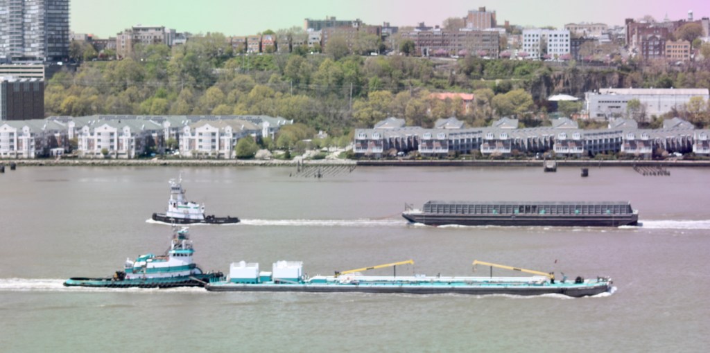 The Coast Guard was also at work on the river, with three 29’ Fast Response Boats seen heading north separately and then returning together.