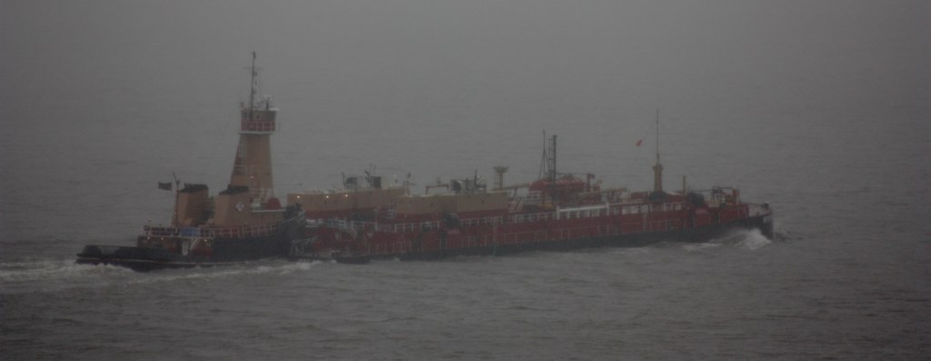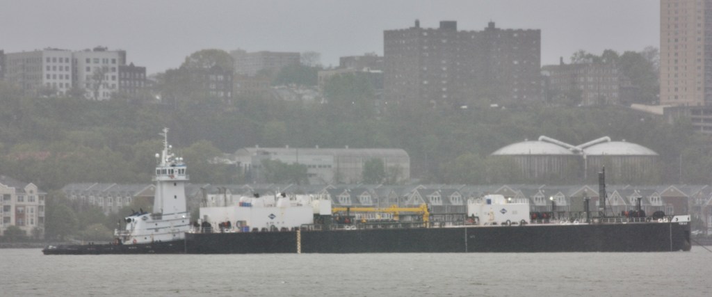 Tanker traffic showed little sign of being impacted by the foul weather Saturday. Only the Mako was anchored in the North River, having arrived Friday, and at least one loaded AT/B was seen heading north.