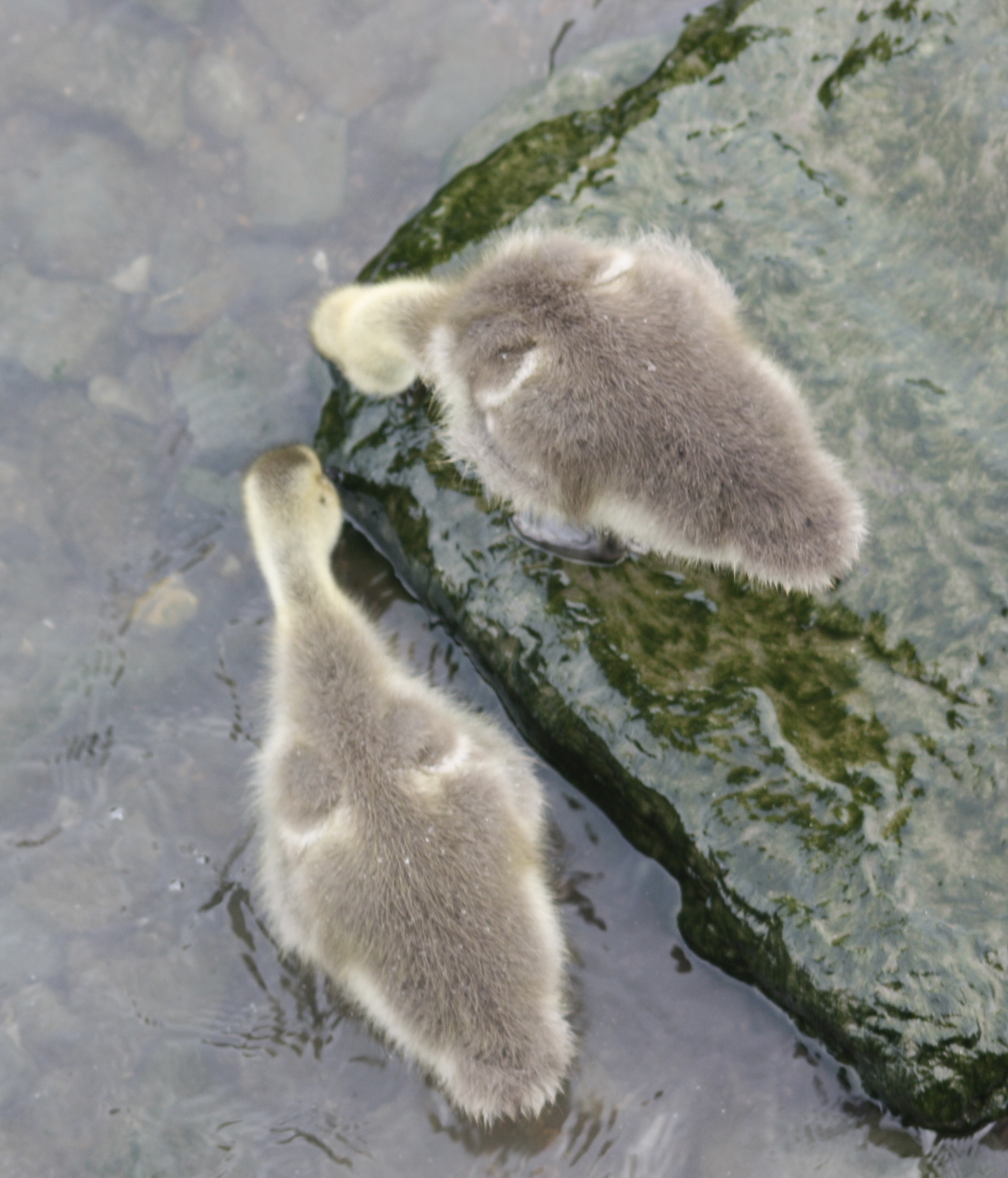 clear how this would happen. Adoption? Day care? Brady Bunch situation? Update!!: @manhattanbirdalert informs me that geese lay eggs at different times and can raise offspring of different ages at the same time. Who knew?