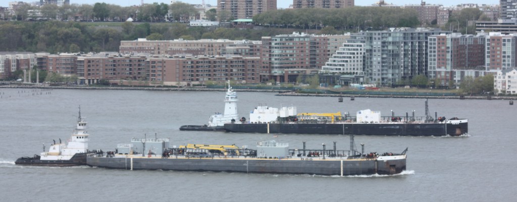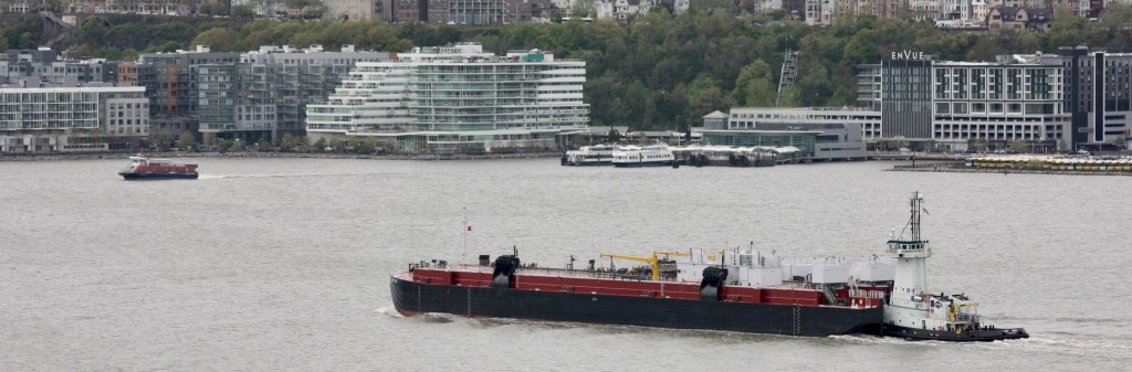 Conditions improved steadily over the course of Mothers’ Day after the drenching of the past few days. The morning saw three AT/Bs at anchor in the river: the Mako and Haggerty Girls remain for a second day, and the Jacksonville arrived in the early hours of the morning from Port Jefferson and anchored near Grant’s Tomb. By the end of the day, Jacksonville had moved down to the Bayway terminal for a new cargo but Mako and Haggerty Girls remained. A number of tankers and hopper barges moved through over the course of the day.