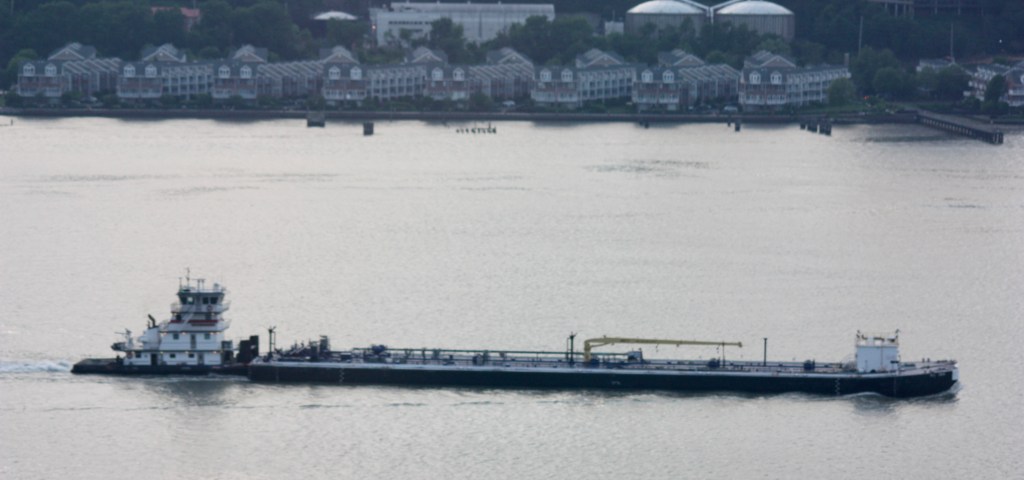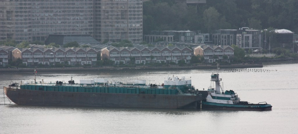 Hot steamy conditions persisted on Sunday, but there was a light breeze and cool water temperatures made things tolerable on the river. Commercial traffic was light but two tug/barge combinations anchored off Riverside Park.