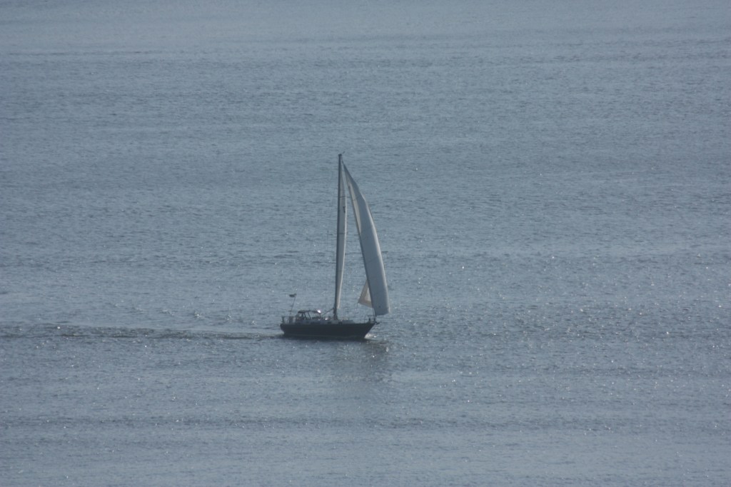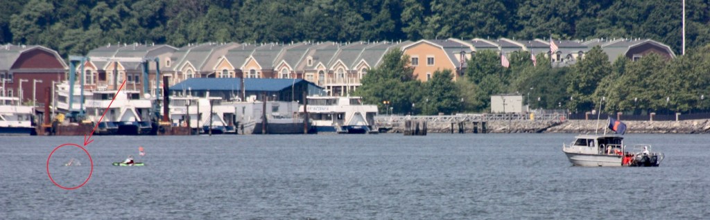 Blazing heat prevailed on Sunday, with light winds out of the south. Recreational activity was most notable early, while things were still cool. Commercial activity was typical for a Sunday. Another escorted swimmer came through in the morning, with its accompanying powerboat flying an “I” flag.