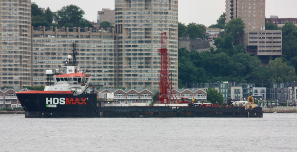 The offshore supply vessel HOS Browning has remained anchored off 72nd Street since Friday. As we discussed in Friday’s post, the vessel is involved in drilling for an offshore wind project in the New York Bight.