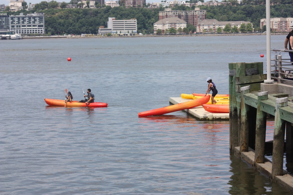 Saturday was a beautiful day to be on the water, and free kayaking was back at Pier 96. The kayakers are confined to a small bay between Pier 97 and Pier 94, which seems limiting to me but at least they can get on the water safely.