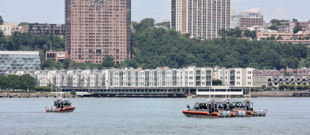 Meanwhile, activity was fairly light on Wednesday on the river, and seemed weighted towards military vessels for whatever reason. A 44’ boat belonging to the New York Naval Militia, the naval arm of the National Guard, passed by in the morning heading north with no AIS signal. Later in the day, four Coast Guard 29’ boats were doing their drills off Riverside Park, with machine guns mounted on two boats as usual.
