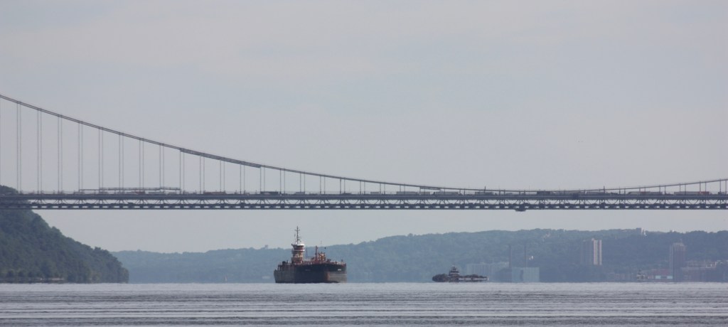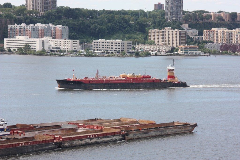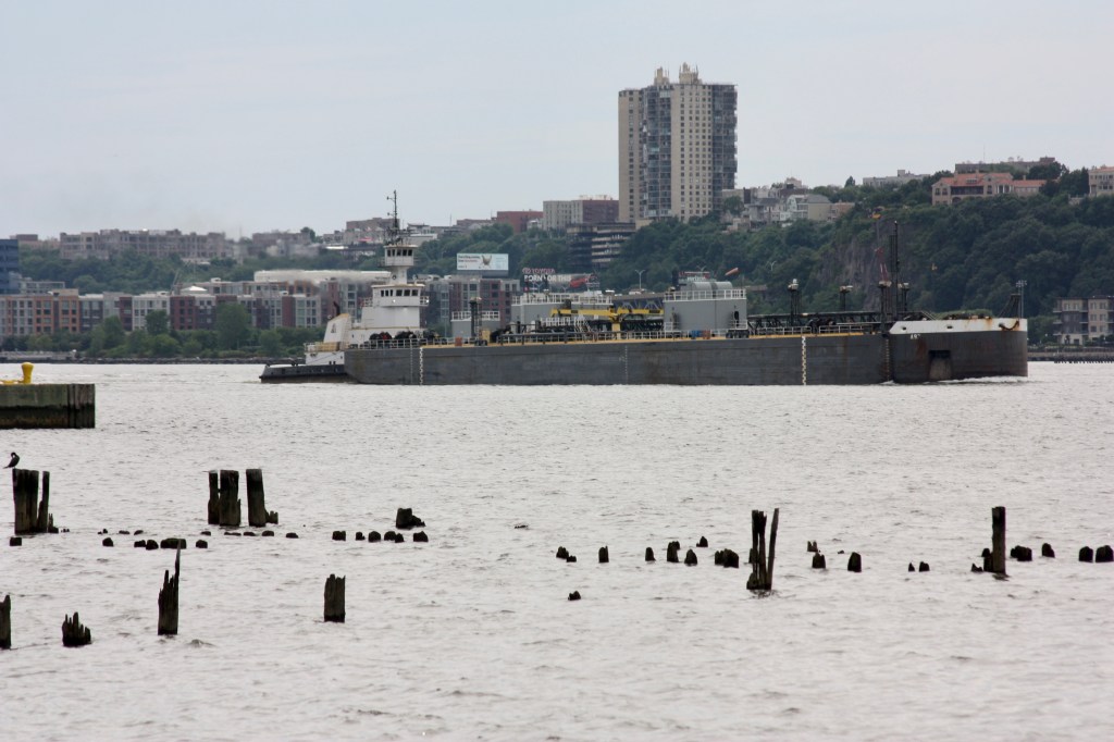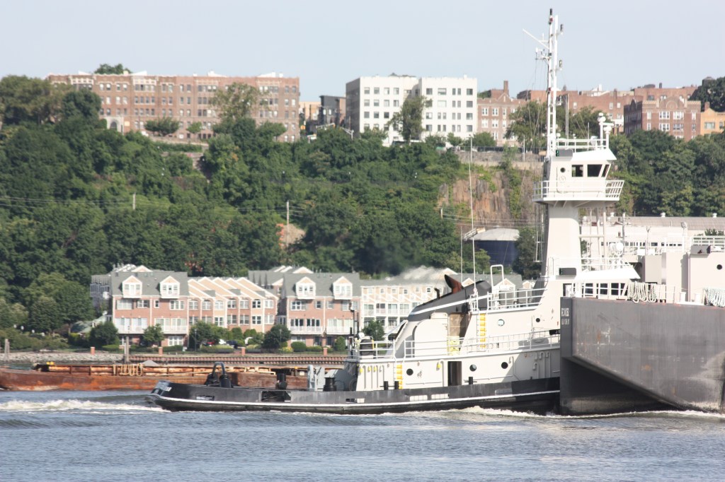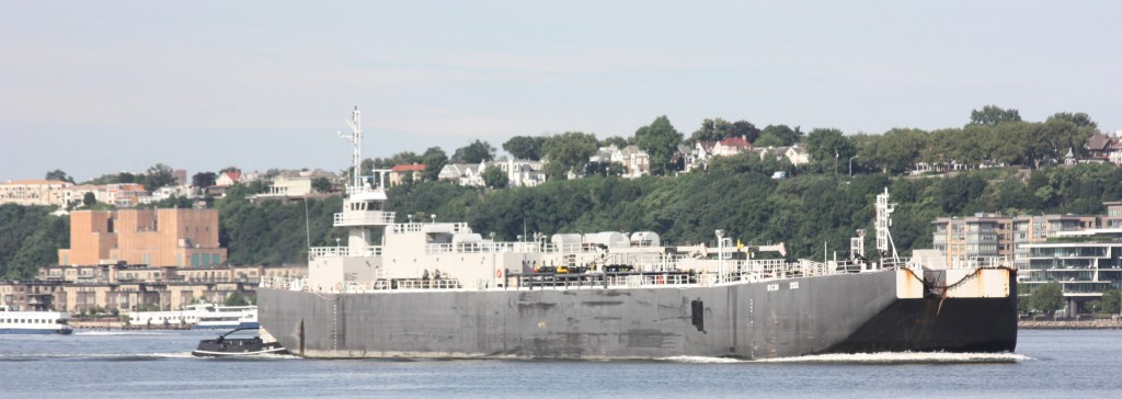 Josephine anchored in the morning, with Buchanan12 visible in the distance pushing hoppers of crushed dolomite rockSarah D of Marine Highway Transportation pushed hoppers probably full of limestone aggregate down from the Peckham Industries quarry in Catskill, heading to the Bay Ridge anchorageBrian Courtney brought some type of gravel or aggregate from Haverstraw Bay down to Constable Hook in BayonneJordan Rose brought an empty tanker barge up to anchor off YonkersRockaway, one of the newer DEP tankers, passed the Lincoln Tunnel vents on the way to the North River plantAn NYPD 45’ boat passed Buchanan12 heading southLater, Buchanan12 came back the other way with emptiesEvelyn Cutler, which passed us heading for Yonkers light Monday, apparently retrieved her barge up there and headed for the Upper Bay Tuesday, passing B12Buchanan12 also passed Josephine Reinauer on one whistle heading south, with B12 forced towards the New York shore as Mako was also at anchor mid river at that pointSaint Emilion came through with what looked like a partially loaded barge, heading for AlbanyA quartet of Blackhawks flew down from Stewart Airbase in Newburgh, made several loops around the Statue and headed back northThe small Insignia cruise ship headed out in the afternoon on a 32-day cruise to La Havre, France via Reykjavik, with assistance from Kirby Moran and an escort from an NYPD 45’erVane Brothers’ Kings Point maneuvered a bunkering barge after refueling the Insignia earlier in the morning The long-tenured Muscovy duck remains in residence at the abandoned 79th Street Boat Basin Marina