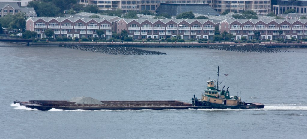 Hopper traffic also remained heavy as construction and road repair industries run at full throttle. We have been seeing a lot of Massachusetts-based Stasinos Boats lately, and another one, the Charles James, brought hoppers with some kind of gravel down from Tomkins Cove to the Newark Bay side of Bayonne where a lot of hopper traffic has been going this week. CMT’s Mister Jim was going the other way, brining some kind of fill and rock load and a deck barge back to Coeymans.