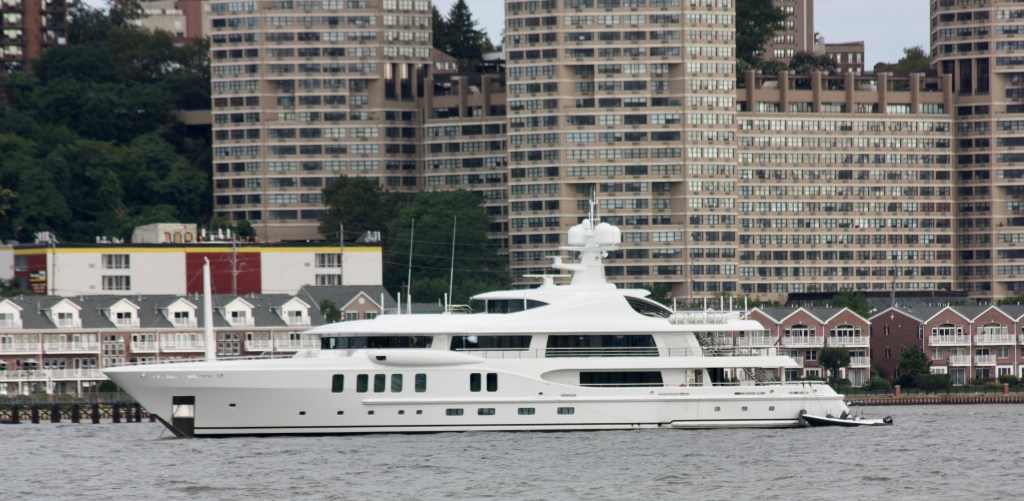 The super yacht Neninka remained anchored off 72nd Street in the morning for a third day. Later in the morning, her tender brought a passenger to the Boat Basin Marina. Did no one tell them it is closed? With no way to disembark there, the passenger returned to the yacht and the yacht subsequently weighed anchor to cruise up and down the river for the rest of the morning.