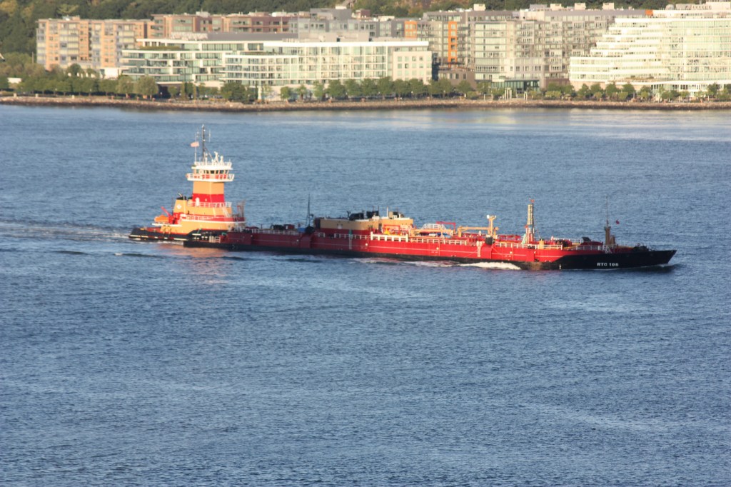 Mid-week brought warm temperatures and passing rain storms. River traffic was fairly typical with some notable exceptions. Centerline Logistic’s Barry Silverton brought a barge up from Freeport, Texas, heading for the Sunoco Hudson Terminal in Rensselaer, an usual move as most refined product cargos heading up the river are loaded in New Jersey rather than being shipped up from the Gulf.