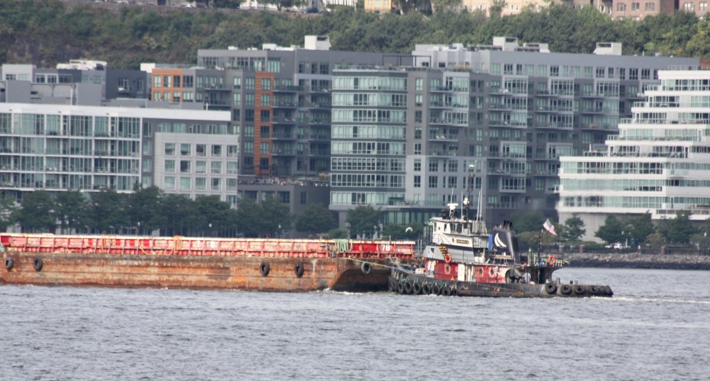 There were no new details available on yesterday’s boat fire and sinking, though we did here from a reader responding to our West Side Rag article on the incident that the boat’s passengers were rescued from the river by a civilian motor boat and transferred to an NYPD launch. A barge with a crane was stationed where the boat went down, suggesting the Corps may make an effort to raise it this week.