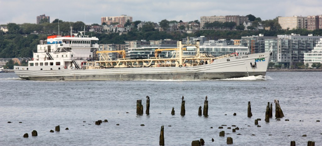 Temperatures moderated Sunday and winds picked up, making for a great day to be on the water for recreation. For some mariners though, Sunday is just another working day, and commercial traffic on the River was heavy. As usual, ATBs were moving oil products north and returning light. Cement barges moved the other way, coming south loaded and returning empty, as did tugs pushing hoppers full of crushed stone and gravel.
