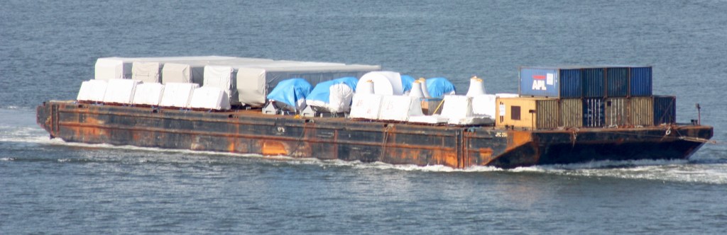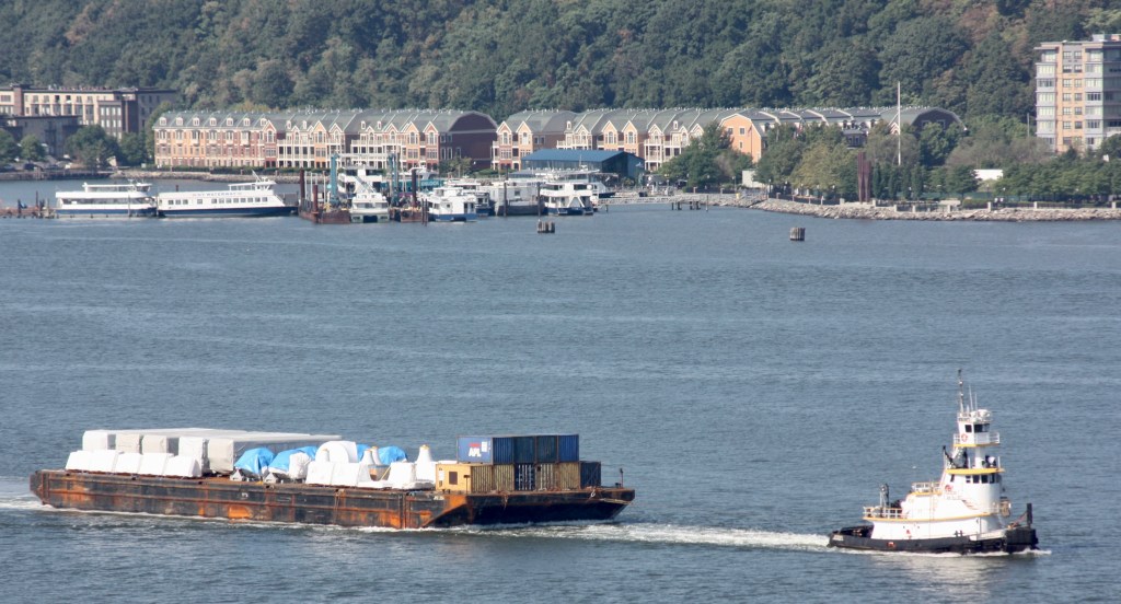 One notable move was a deck barge with varied cargo heading up from Wilmington towards the Port of Albany. The containers on the front of the barge where marked with signs saying NextEra, a green energy company with a number of solar projects upstate so presumably this is solar equipment heading north.