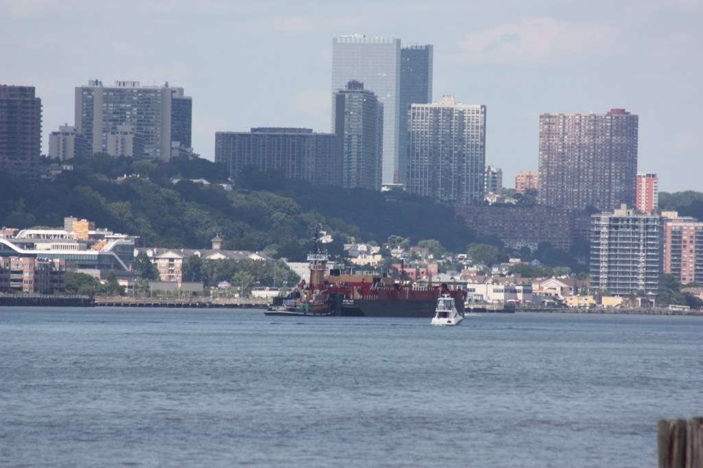 Summer is drawing to a close, but you wouldn’t know from the temperature, which remained hot Saturday. Winds were light and out of the north all day, providing less relief than in recent days. Commercial traffic on the River was heavy. The Cape Henry remained at anchor off 86th Street after arriving Friday evening and was joined by the Timothy Reinauer a bit further north later. Kimberly Poling, which had been anchored off Edgewater overnight, left in the morning hours for more cargo.