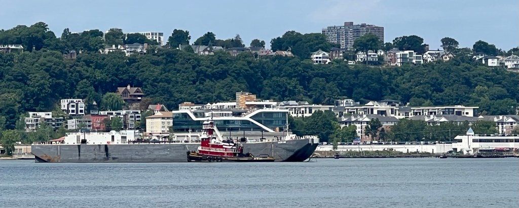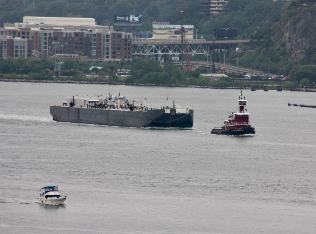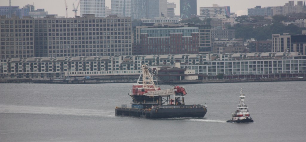 Sunday brought hot temperatures and light winds out of the East. The morning was marked by tugboats working in pairs, with a pair of tugs pulling and pushing a huge Weeks crane north, and a pair of Vane Brothers tugs also heading upstate light. Anchorages were filing up, with the Cape Henry and Stephen Reinauer joined by Patrice McCalister.