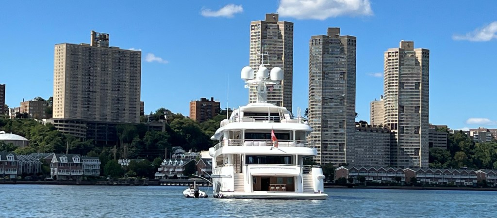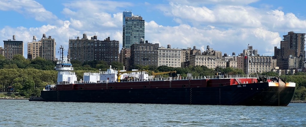 Tuesday and Wednesday brought moderate temperatures, and building westerly winds which made for great sailing up and down the river by Wednesday afternoon. Activity in the city and on the River was subdued in the run up to Labor Day weekend. A pair of Reinauer tugs and the Patrice McCalister were at anchor on the River Tuesday, and they were replaced by the Cape Henry, which came back to River after refueling at the Kirby dock on Staten Island and then spending some time in the Upper Bay. The super-yacht Neninka was back at anchor off 72nd Street after returning from Greenport, NY on the North Fork.