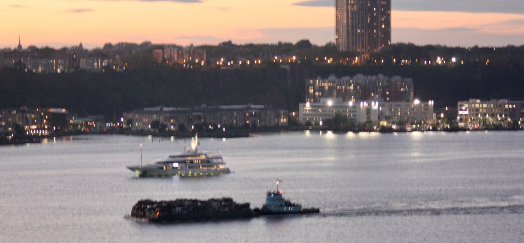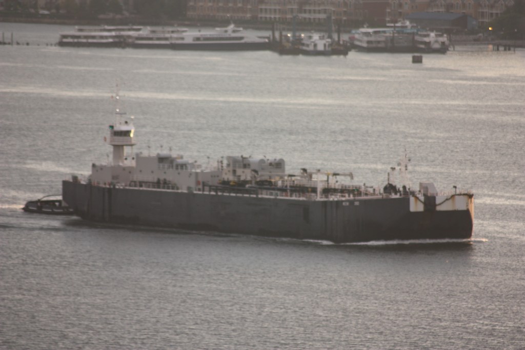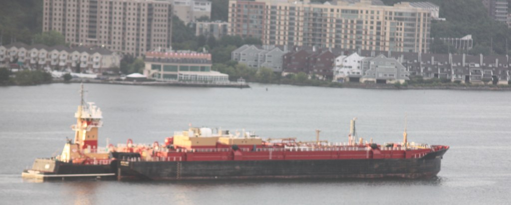 Monday was hot and hazy, with storms coming through in the afternoon. Commercial traffic observed was mainly concentrated in tanker barges. Dean Reinauer came up from the Arthur Kill and anchored in the North River with a loaded barge, which is not typical (usually anchoring barges are light). The periodic closures of the East River as the UN meetings get underway was the likely explanation. By 6pm she had pulled up her hook, headed around the Battery, up the East River, through Hell Gate towards the Sound.