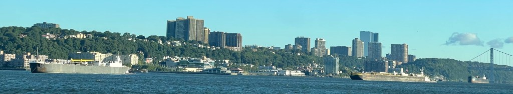 Norfolk’s Pathfinder and Paula Atwell were bringing empty Covanta municipal waste containers back to the Flushing Bay marine transfer station. These Norfolk tugs do not visit the North River regularly but rather shuttle full containers from Flushing and the Upper East Side transfer facility to the Staten Island container terminal where they are put on trains and shipped to the Covanta waste-to-energy plant near Buffalo. Covanta also has a plant in Newark, but trash travels there by truck according to a recent article in New York Magazine’s Curbed.