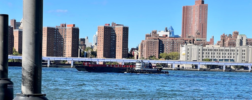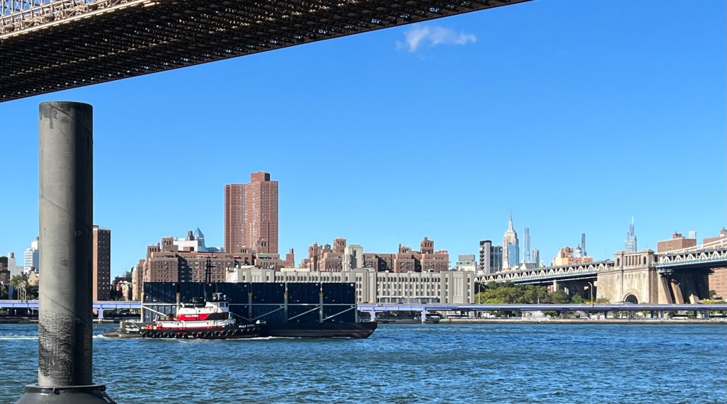 Meanwhile, a trip to Brooklyn’s Fulton Landing ferry dock offered a good chance for ship watching. The Nathan G passed by there as well, coming back from Newtown Creek with an empty hopper barge.