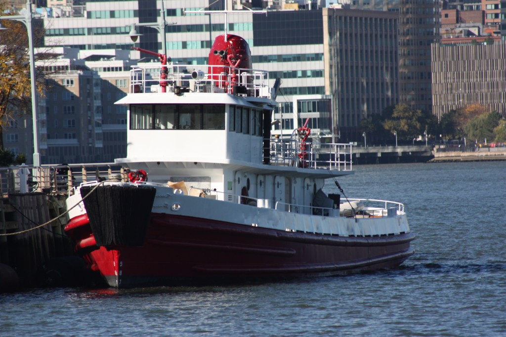 UPDATED ON NOVEMBER 6: The fireboat John McKean remains in Haverstraw, so it is unclear which fireboat is now tied up at Pier 25. To be investigated further.