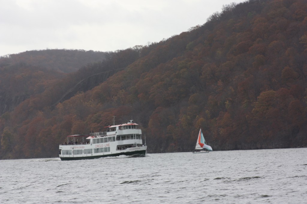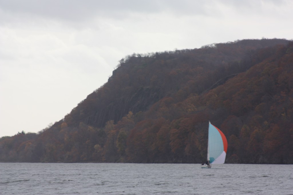 Helping to transit a J80 sailboat from Inwood to winter quarters in Verplanck provided a great opportunity to observe the Hudson north of the section known as the North River. We covered the 25 nautical miles in about 5.5 hours thanks to favorable southerly winds and a flood tide. Commercial traffic was light along the way, but the fall colors were glorious.