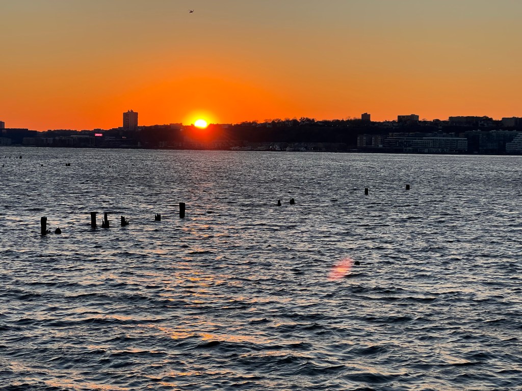 Temperatures fell below freezing early Saturday, the first freeze in New York City this year, but clear skies allowed us to get back to 40 by the afternoon, and the River remains a source of warmth for the time being as well. The North River anchorages remain in demand, with Kimberly Poling remaining off 72nd Street since Friday afternoon, and Timothy, Gracie, and Kristy Ann Reinauer all lined up off Edgewater, plus several more tug/tanker barge combinations sitting off Yonkers.