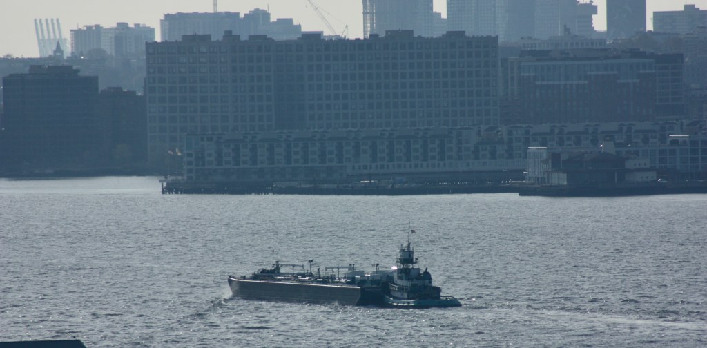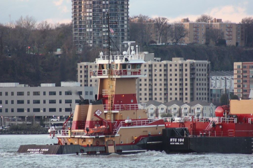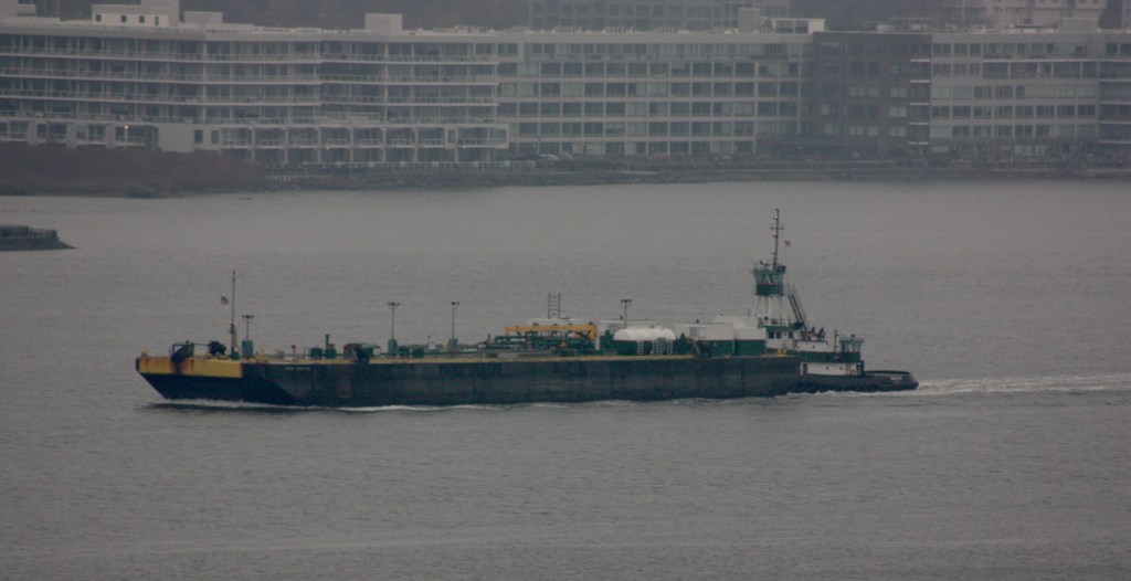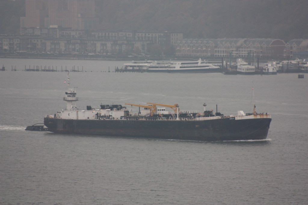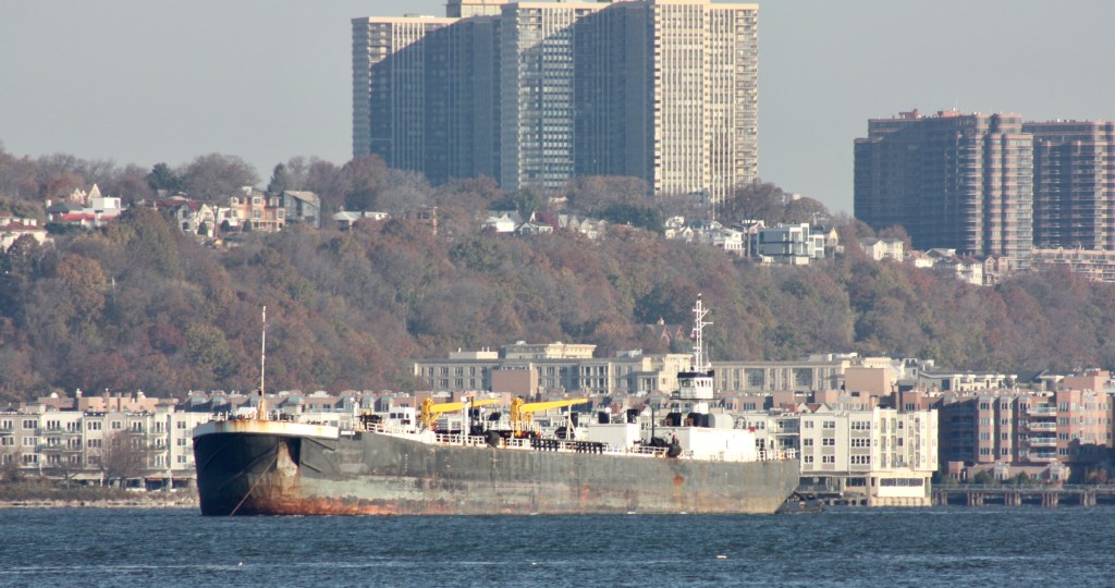 Activity on the River was unsurprisingly subdued over Thanksgiving, but Friday seemed to bring a wave of catch up traffic. Three tug/barge combinations were anchored in the River at sunrise on Thanksgiving, but by afternoon the Kimberly Poling had pulled up her hook and headed for Raritan Bay for the overnight. Adeline Marie made an early Friday departure for the Upper Bay, but then came back and reanchored, still with her light barge. Cape Lookout was back at work though, leaving Friday morning and heading for the Phillips Bayway terminal on the Arthur Kill. Saint Emilion and Copper Mountain seemed to have exchanged a barge Friday morning off Yonkers.