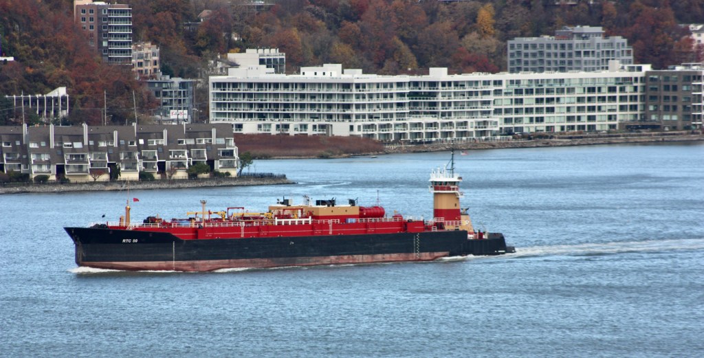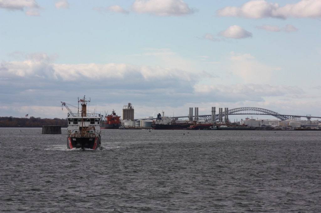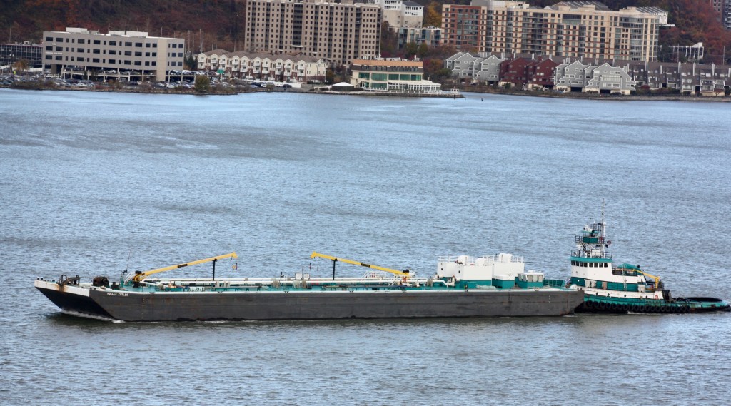 The southern end of the rainbow, over WeekhawkenThe northern end landed in North BergenEvelyn Cutler returned from Albany with a light bargeEvelyn proceeded to the Bayonne IMTT for new cargo, where two foreign flagged tankers were unloading oil products from Europe. The Coast Guard buoy tender Katherine Walker is in the foreground…And was later seen servicing buoys in the Upper BayKristy Ann left her anchorage off Edgewater with her 347’ barge and headed for the harborKristy Ann was later seen preparing to anchor in the Upper Bay, with the Verrazzano Bridge and Bay Ridge in the backgroundAdeline Marie remained at her 72nd Street anchorage at the morning slack tideKimberly Poling at anchor off Edgewater Monday morning before heading for CateretThe Aurubaborg heading for Albany with a load of wood pulp from FinlandIcebreaking cutter Sturgeon Bay was heading from her Bayonne base up to Poughkeepsie, producing a lot of smoke as is usual for these 1980s vintage Bay Class Cutters.The Beatrice returned from the Buckeye Terminal north of Newburgh with her nearly 400’ long barge empty and headed out through the Narrows, signaling Philadelphia James William, who is more often seen moving stone and sand around the East River and Upper Bay, was running light on a loop up to Riverdale for unknown reasons before heading back to her usual territory, seen here passing the old Lackawanna TerminalEast Coast was in the Upper Bay, heading back to Yonkers and its sugar barge there after making a drip to the Dann dock on the north shore of Staten Island