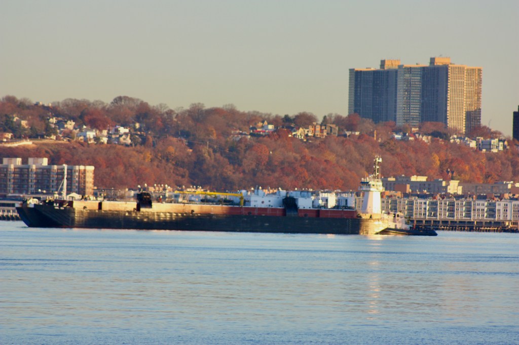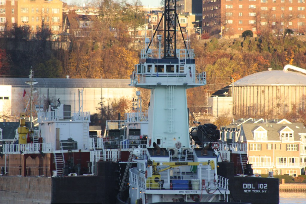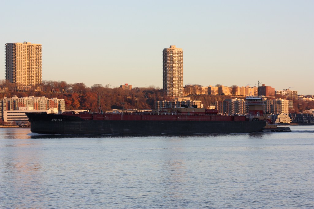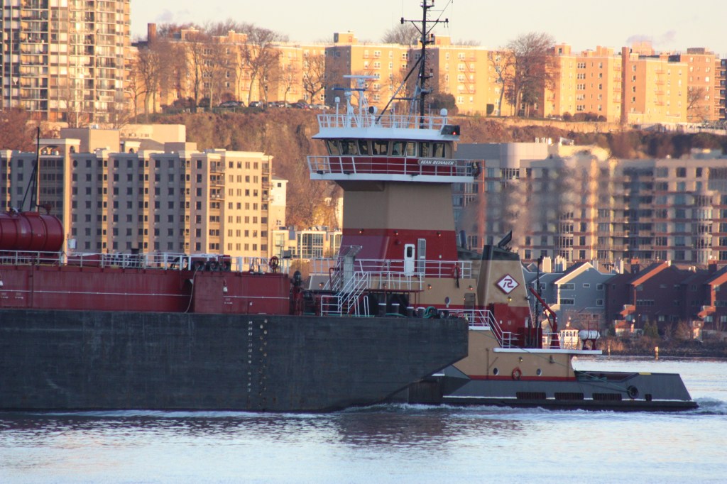 Dean Reinauer made an early departure, heading for a Cateret terminal with their 413’ barge.…and passing a north bound Everly Mist on one whistle on the way outHaugland’s Everly Mist was pushing light hoppers back to the company’s Tomkins Cove port at sunrise, then returned in the afternoonKirby’s Cape Henry was anchored off 86th Street at sunrise, before departing for Bayonne’s IMTT later in the morningCape Lookout showed her stern to New York at slack tide off 72nd Street, before pushing her 400’ barge down to the Upper Bay anchorages off Bay Ridge after sundown on FridayAt midday, Hackensack University Medical Center’s chopper landed at the Palisades Medical Center in North Bergen and left a short time later to the main UMC hospital in Hackensack, likely with a critical patient on board.