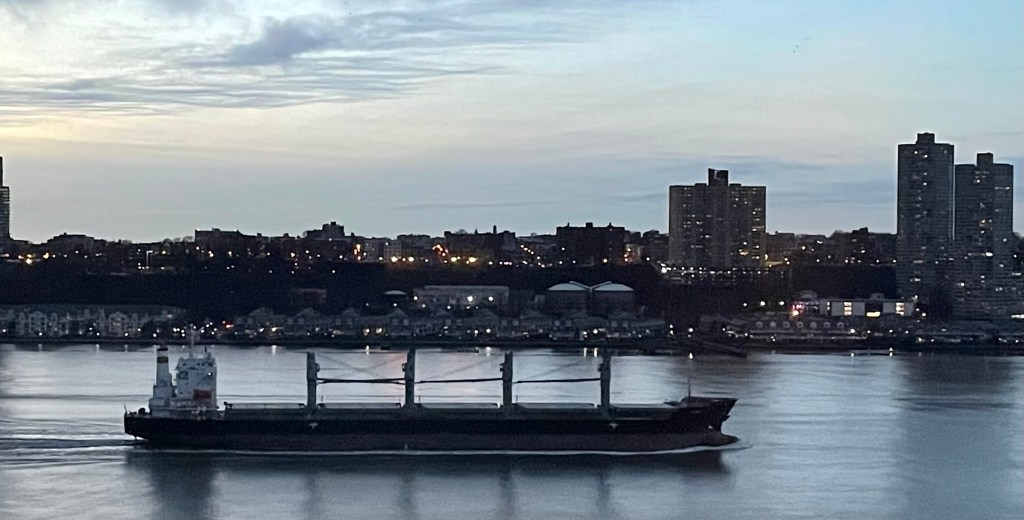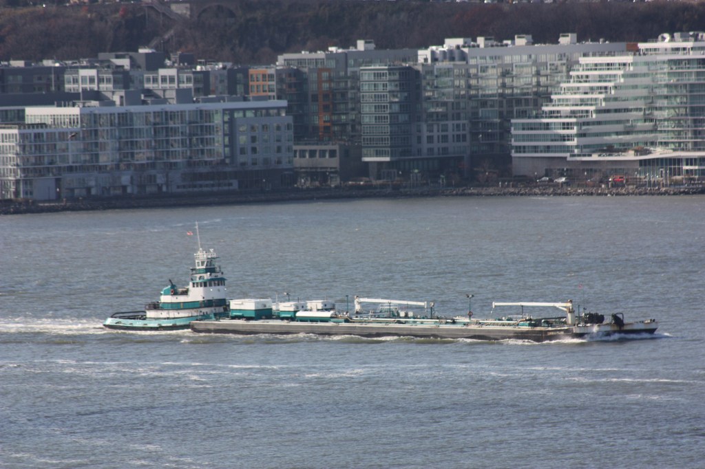 The weekend arrived with clear skies, cold temperatures and occasionally brisk wins out of the north. Tanker barge crews remain busy, moving product north, including heating oil. With few product pipelines and no refineries north of North Jersey, heating oil heading for upstate and Vermont mainly moves by barge up the Hudson, and via Long Island Sound for cargos heading for the rest of New England. Newburgh seems to be on the receiving end of a lot of product over the past two weeks for whatever reason. Salt also moves up the river in the winter on big bulk carriers arriving from Chile and Mexico, and one came through in the final minutes of daylight Saturday.