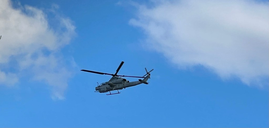 Patrice McCalister with RCM262 on the hip at anchor showing off its notchCopper Mountain and barge at anchor a bit further northBrinn Courtney brought a load of stone down from Tomkins CoveEverly Mist brought what looked like dirt down from up northJordan Rose left anchorage off Yonkers and headed out of town, passing south along the Jersey Shore by eveningEvelyn Cutler came down from Albany and headed to Bayonne IMTT for new cargoCurtis Reinauer, seen less frequently on the North River, came down from Albany and headed for the Upper Bay to anchorDonJon’s Brian Nicholas serviced the DSNY pier and headed for Staten IslandA 29’ Coast Guard boat was on patrol, following a Dolphin chopper overheadA Marine Viper attack helicopter looped up the RiverEscorted by a larger helicopter, maybe a Huey, as we have seen in the pastA big Navy Sikorsky chopper also passed south on the RiverWarmly dressed sailors were out on a J24And kayakers put in an appearance with a stand-up paddle border