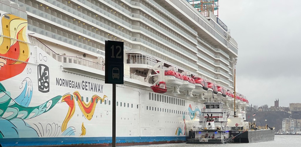 HOS Browning, a survey ship involved in wind turbine work offshore, remained anchored off 72nd and may be intending to remain through the Christmas weekend, as she did over July 4th weekend. There were two Norwegian cruise ships at the cruise terminal Friday, with Gem seemingly having delayed her departure for the Caribbean after arriving from Europe the day before, and Getaway scheduled to leave Friday night.