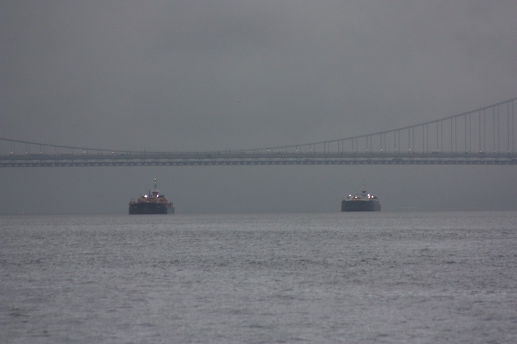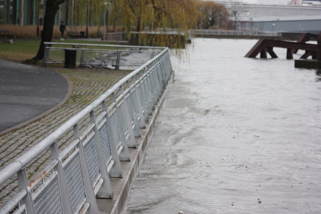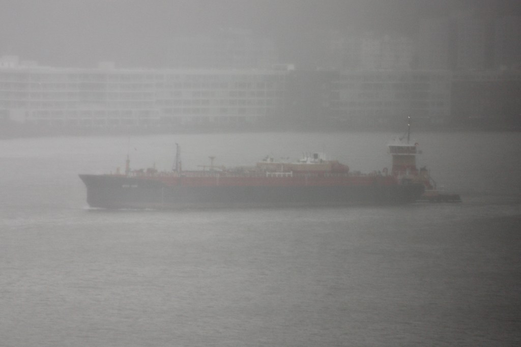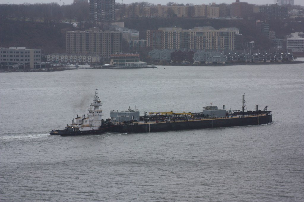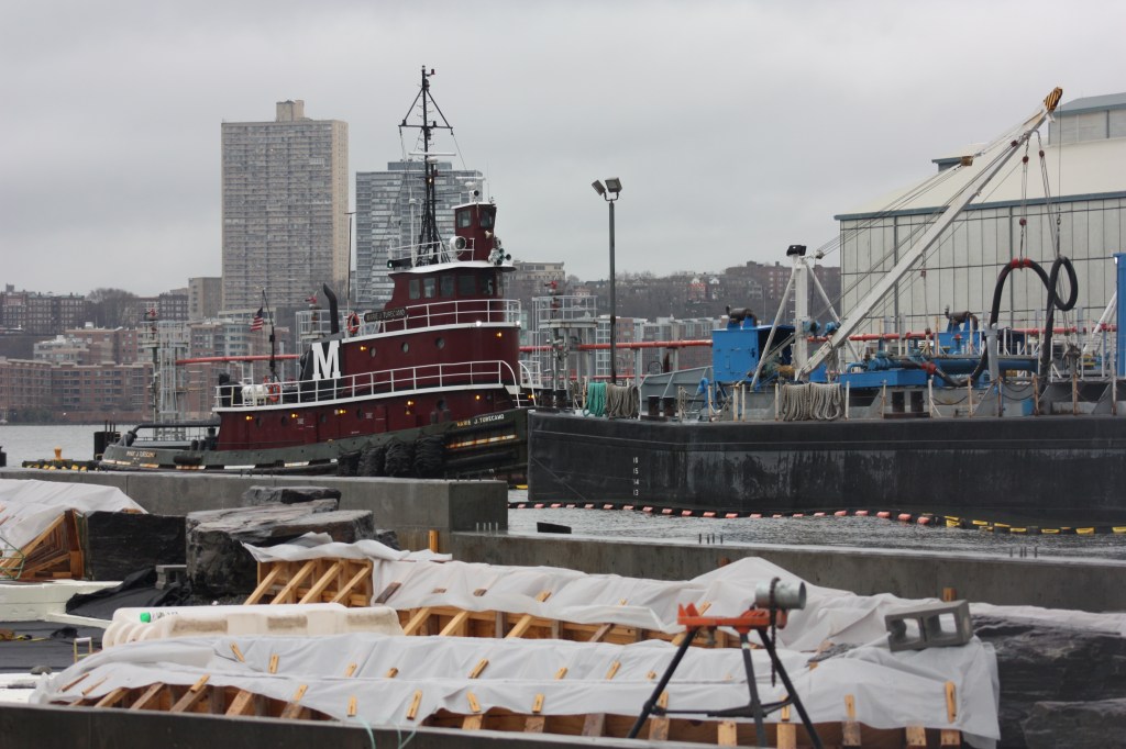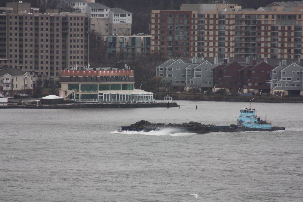 High tide brought serious coastal flooding to New York Harbor Friday morning, with reports indicating neighborhoods on Jamaica Bay seeing their worst inundations since Sandy. Impact on the Hudson was much less dramatic, though high tide was still visibly above normal and some areas of Riverside Park South and Hudson River Park saw water where it does not normally reach. Flood waters receded with the ebb tide by 11am, but then gale warnings went into effect as winds picked up and a storm came through from the southwest, bringing heavy rain and even a bit of snow, with winds gusting to over 40 MPH. Temperatures are set to plunge sharply as we move into evening, falling into teens from over 50 in the morning. The North River anchorages were crowded Friday morning, but traffic continued to move through the rough afternoon conditions.