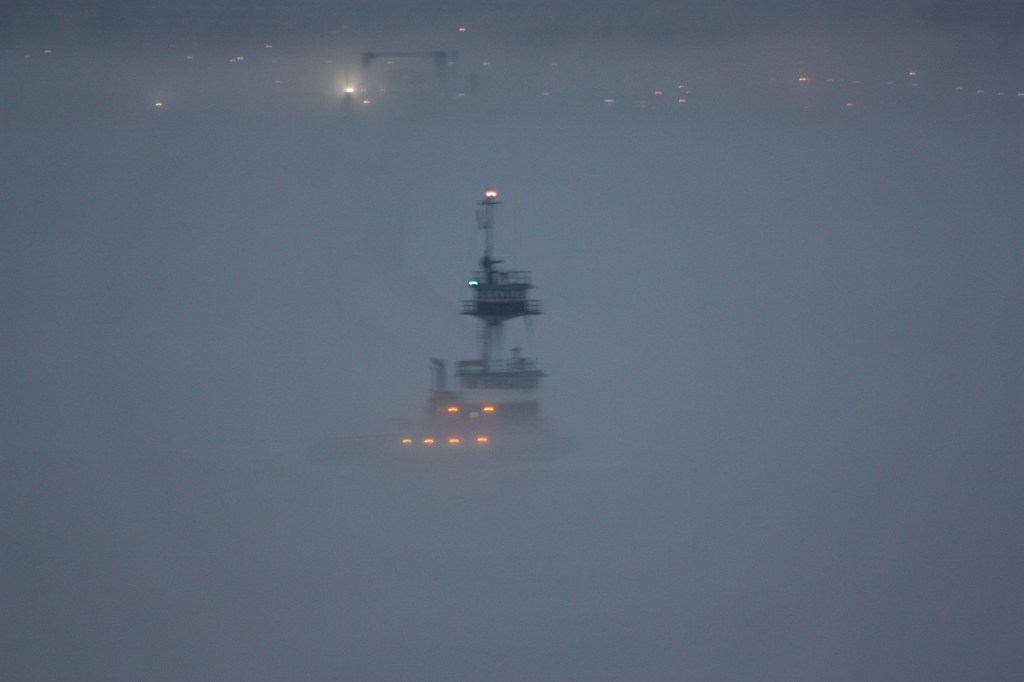 A return to the River after a 10 day absence found conditions somewhat improved from the frigid temperatures prevailing before Christmas, but light commercial traffic and a blanket of fog sitting over the city were not conducive to photography. Observed vessels were mainly North River regulars, though the cargo ship BBC Aralia did slip by unobserved at midday. Her colleagues on BBC Topaz arrived at Port of Albany earlier in the morning carrying equipment for the Plug Power hydrogen cell plant which opened near there earlier this year. Perhaps Aralia has similar cargo.