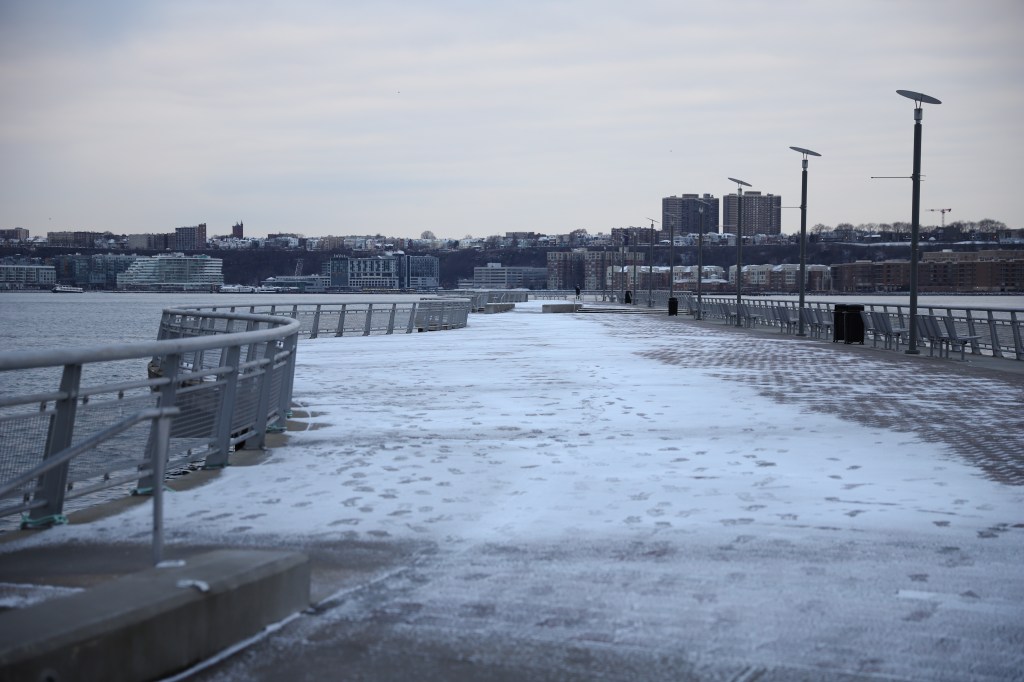 Janice Ann Reinauer at anchor Wednesday morning after a late Tuesday return from Providence.Evelyn Cutler anchored off Yonkers overnight on her way back from Albany but was on her way at sunrise with a dusting of snow on her barge. After killing some time in the Upper Bay she appeared to be loading a new cargo at Bayonne IMTT Wednesday evening.A trio of Coast Guard 29’ boats came up from their Staten Island base and stayed on the River for no clear reason and with no machine guns mounted.The Coast Guard 65’ small harbor tug Line was also heading north to Poughkeepsie, probably to be in position for icebreaking this weekendBuchanan12 was pushing crushed dolomite south from the Clinton Point quarryDonJon’s Mary Alice was pushing scows north, probably to pick up scrap in AlbanyAnother DonJon tug was moving recycled paper out of Pier 99, heading for the State Island paper mill.This diminutive Verplanck-based tug passed us light heading south the other day, and now was heading for home with a construction barge from the Caldwell Marine yard on Staten Island…The wheelhouse was not quite high enough to see over the Quonset huts on the deck, so the driver brought a folding chair up to the flying bridge which must have been chilly.Norwegian Getaway arrived at Pier 88 just after sunrise, returning from a 12-day roundtrip to the Dominican Republic and the BahamasBy sunset, she was on her way again, heading out on a 5-day Bermuda run, with an NYPD launch and Coast Guard 29’ boat providing escort.This kayaker and paddle boarder were out early again, despite freezing temperatures.Pier i with a dusting of snow, which did not last long