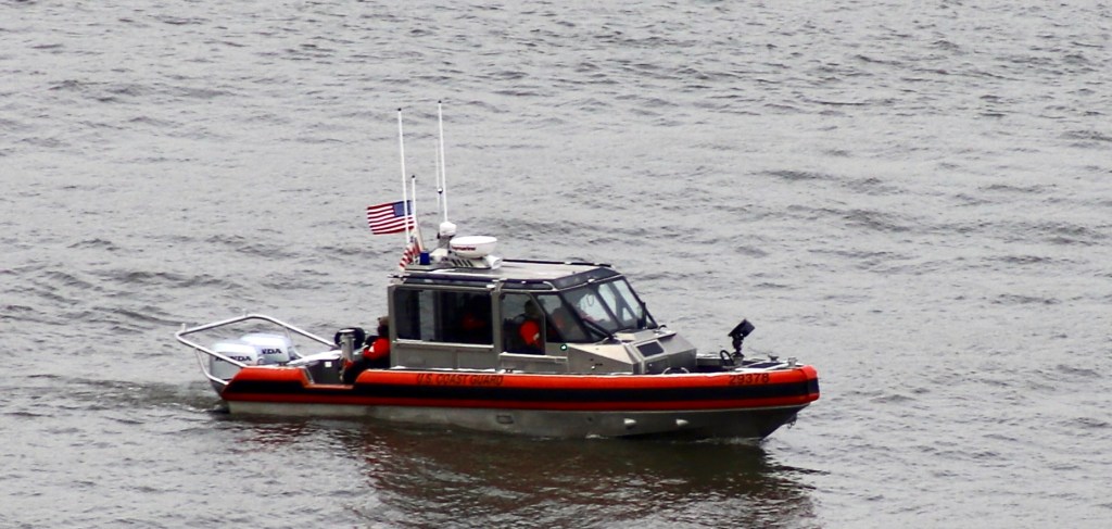 There were three Coast Guard 29’ response boats on the River during the day, spread out up to the Bridge for no obvious reason. One helped escort Norwegian Getaway on her afternoon departure, a job usually left to the NYPD. With colder weather coming, the Coast Guard’s Bayonne-based small harbor tug Line headed up to Poughkeepsie. The larger icebreaker, Sturgeon Bay, was already upriver, reaching Albany Wednesday night. Penobscot Bay and the other 65 footer, Hawser, were in reserve at the Bayonne dock.