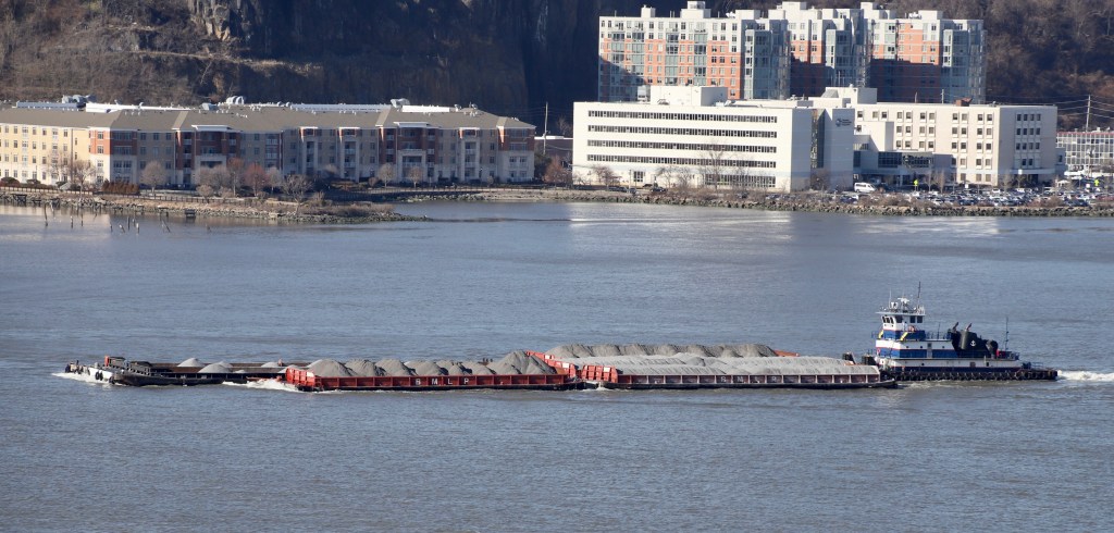 Central Park recorded 0.4” of snow overnight into Wednesday morning, ending the record-breaking snowless winter streak. The dusting had all disappeared by midday though as temperatures climbed up above freezing. Meaningful cold is supposed to arrive Friday. Meanwhile, the River remains strangely bereft of traffic, with no tanker barge cargos observed moving upriver. Janice Ann Reinauer returned from Providence with a light barge and anchored off 116th Street, where she remained through the day.