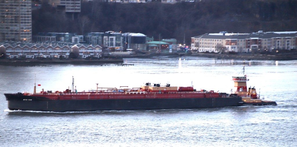Pleasant temperatures, light winds and occasional showers characterized the middle days of the first full week of February. River traffic was largely unremarkable. The William F. Fallon Jr and Gracie Reinauer anchored in the River Tuesday but by Thursday, Fallon was on their way to the Riverhead Terminal on the north shore of Long Island after a stop in Bayonne, while Gracie was on the KvK. Anchorages were empty all the way up the River, with Saint Emilion having left its spot off Yonkers to load new cargo.