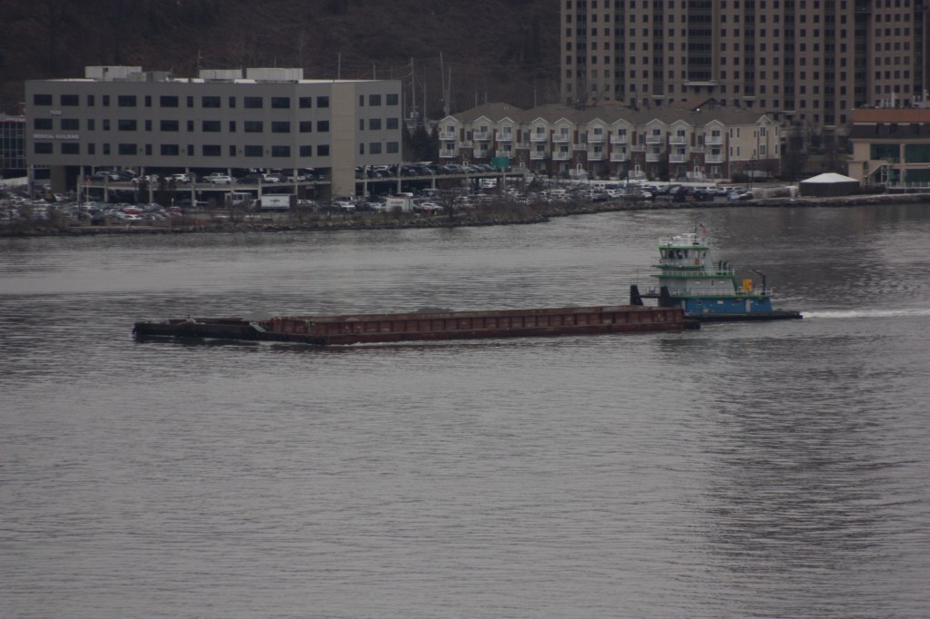 Conditions have deteriorated as the week has progressed following the Washington’s Birthday holiday, with Wednesday bringing rain and hail, though still no measurable snow. Traffic on the River has included some vessels seen less often, though activity has been generally light.