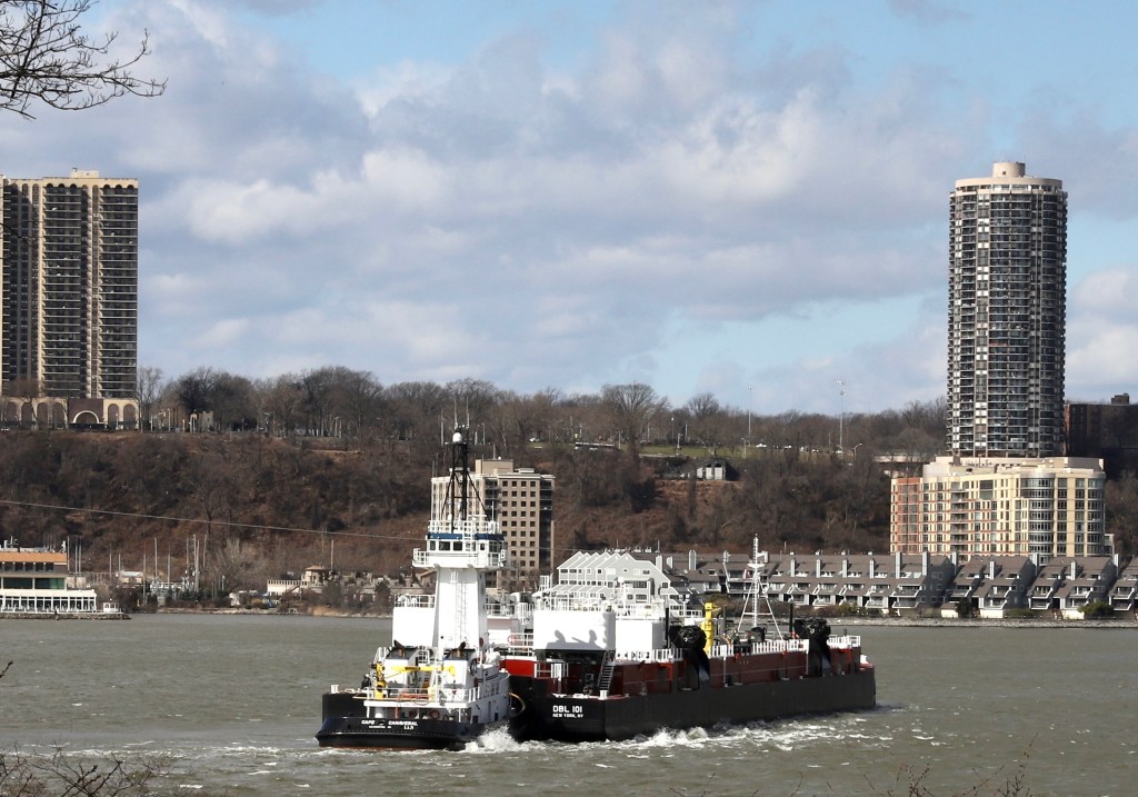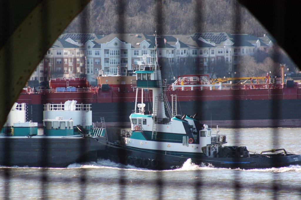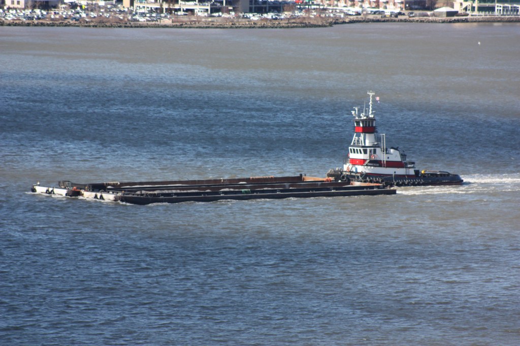 Genesis Glory at anchor off the Boat Basin Thursday morningWilliam Fallon was anchored further northB. Franklin Reinauer was parked further south, and remained there through Friday.William F. Fallon, Jr left their anchorage Thursday morning and headed for the KvK, with her barge seemingly loaded, another example of what has become more common place this year: anchoring with a loaded barge.Royal Wagenborg’s Ebroborg came through Wednesday evening, arriving from Sweden via Philadelphia, and heading for Albany with a likely cargo of wood pulp for paper mills up north.The next morning, Marilyn George, Poling-Cutler’s newest tug which we saw for the first time on the River exactly a month earlier, was heading for the Yonkers anchorage, where she remained until Friday afternoon……when she passed B. Franklin again heading for the Arthur KillGracie M. Reinauer was heading for Albany with a cargo Friday morning, visible between the Intrepid’s island and a Lincoln Tunnel vent, with Jersey City and the whispering Water’s Soul statue in the background.Cape Canaveral muscled its barge into the wind and the flood tide Friday to drop anchor off the Boat BasinGeorge Holland continued to fill in for Buchanan12 on the Clinton Point quarry run, coming south on Thursday…And again on Friday with a smaller load.Pinuccia brought a light barge south on FridayIcebreaker Penobscot Bay returned from Poughkeepsie Thursday to the Bayonne base. Her cousin Sturgeon Bay remained deployed up north. The small tug Line also came back from upstate and anchored at the Coast Guard’s mooring ball south of the Bridge.A Coast Guard 45’ response boat was also on the River Thursday.Megan Ann worked a waste paper scow at Pier 99 ThursdayThe kayak/paddle board pair were back on the River Thursday as temperatures held well above freezing.This weirdly painted and not obviously marked Blackhawk came down the River with no transponder signal.Marine King Stallion 03 flew up the River at 300 feet Friday afternoon. 03 is one of the first of this new generation of heavy lift chopper to be delivered. The program is in late stage testing. King 03 was flying from Naval Air Station Patuxent River, where Air Systems Command is based, en route to the Sikorsky plant on the Housatonic River in Stratford Connecticut where it was manufactured.
