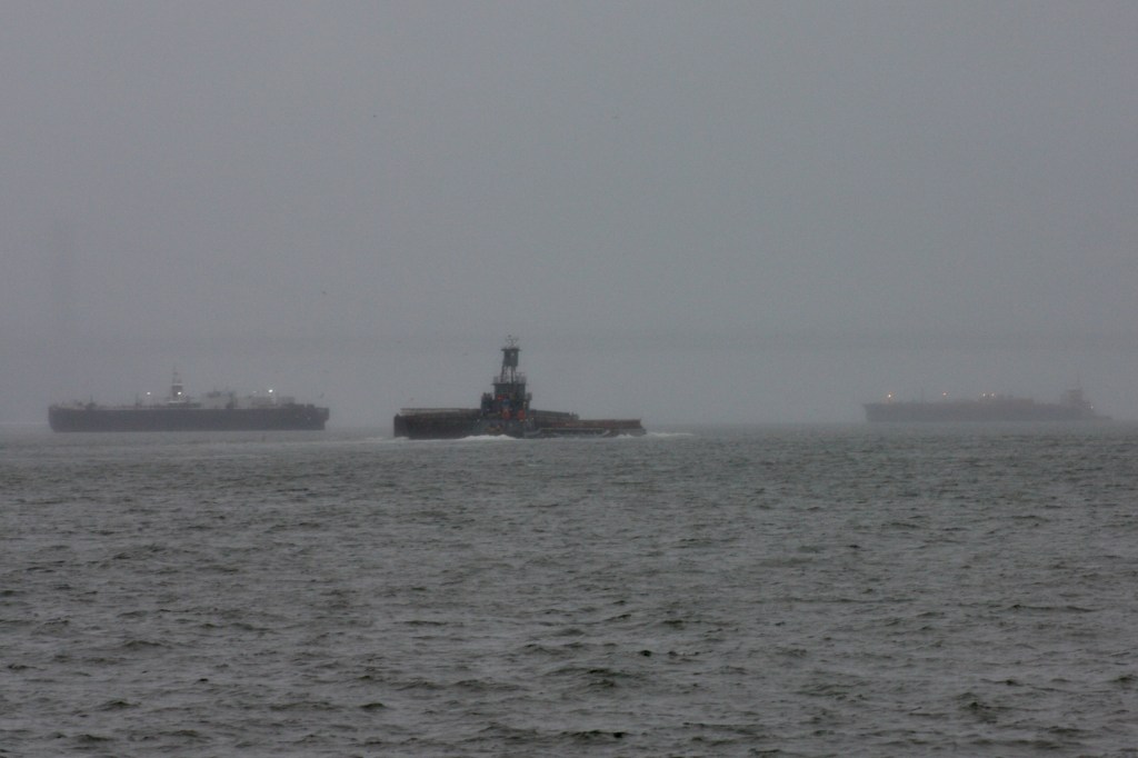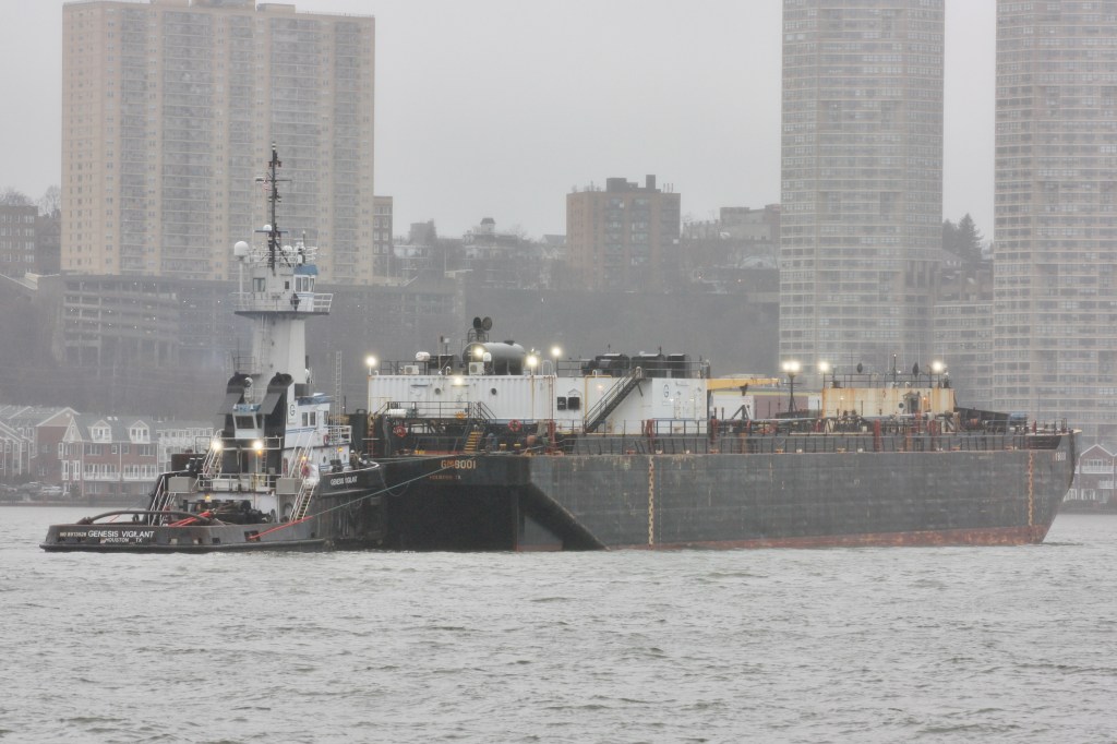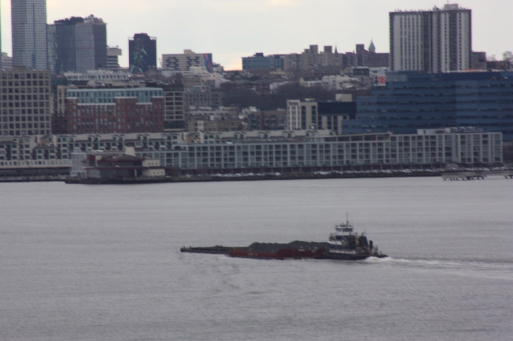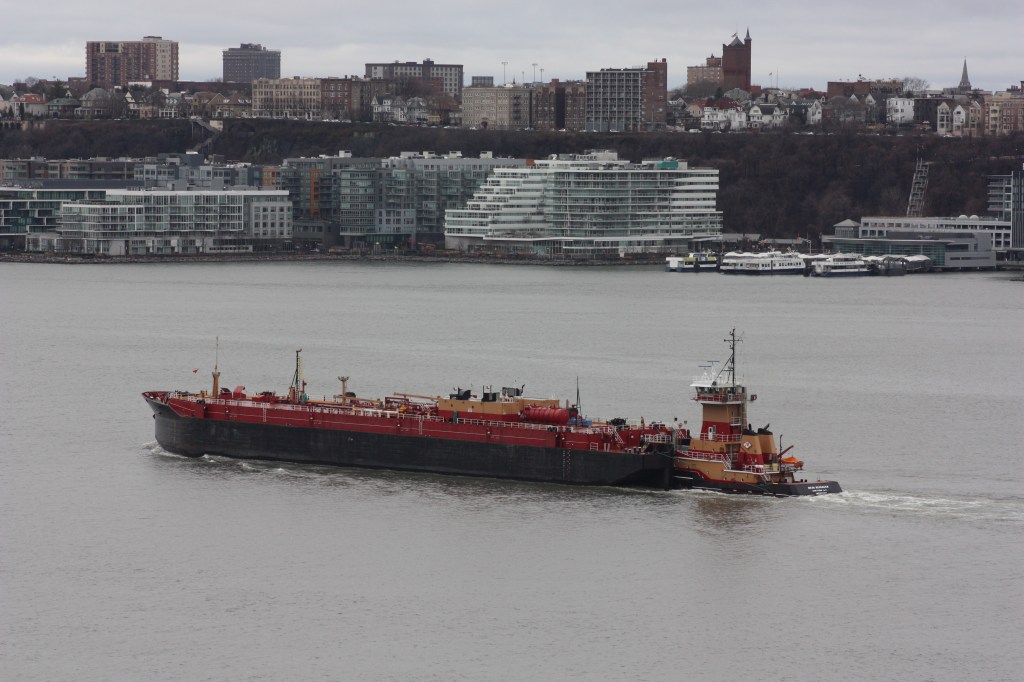 The sun rose Saturday morning on a crowded North River anchorage, as tug and barge combinations took shelter from the overnight gale conditions. Robbins Reef recorded a gust over 40 knots Friday night, but conditions improved Saturday with clearing skies and reducing winds even as temperatures dropped a bit. Tugs in the River headed out for new cargos, with only Adeline Marie and Kristy Ann remaining south of the Bridge and Mt. Saint Elias just to the north.