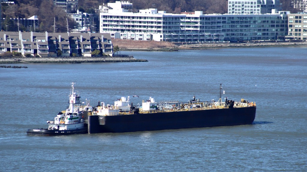 A whipping northwest wind made it feel like winter again on Tuesday. Robbins Reef recorded gusts over 40 knots and a small craft warning was in effect for the harbor. River traffic slowed a bit after a frenetic start to the week but tanker barges began to accumulate at the anchorages again. Activity this week has been dominated by the Vane Brothers for whatever reason, with two more tug/barges seen Tuesday after Wye River and Pocomoke briefly anchored Monday.
