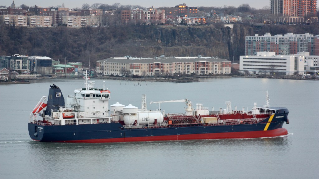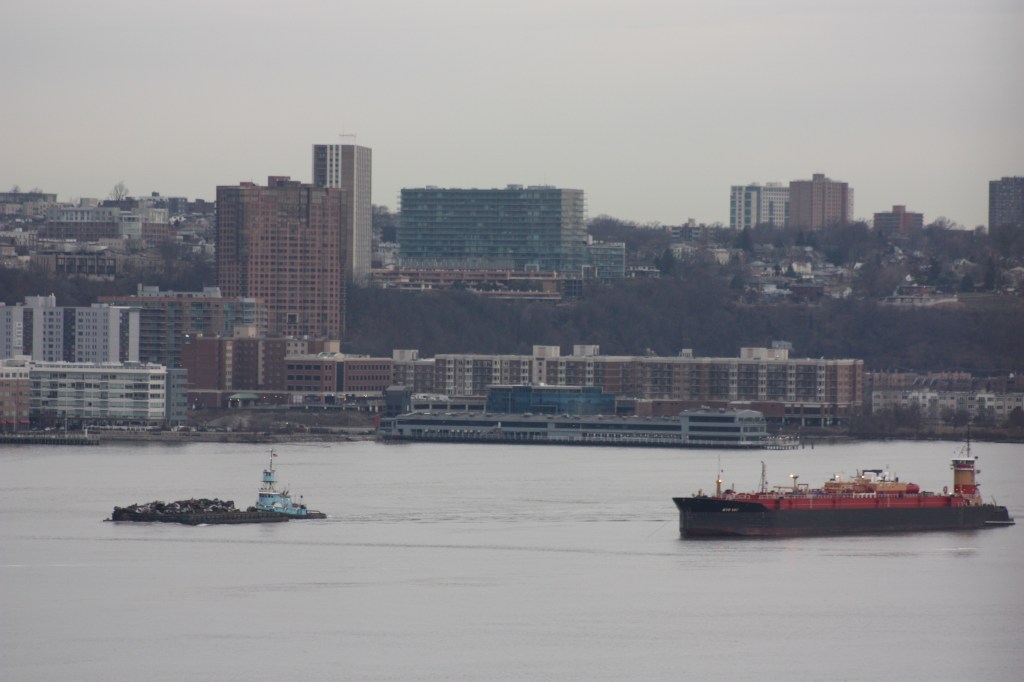 The Mia Desgagnes, a Canadian-flagged LNG/oil dual-powered tanker headed for Albany Friday with refined products cargo from Northern Europe.Buchanan12 came through at sunrise with its usual hoppers of crushed dolomite from the Tilcon Clinton Point quarry.DonJon’s Mary Alice brought a scow full of scrap down from Albany to the Sims Metal dock in Jersey City, passing the anchored Haggerty Girls who spent Friday off 72nd Street.The survey ship Yeti belonging to S.T. Hudson Engineering headed up the River Friday morning for the second day in a row.CMT’s Mackenzie Rose brought a light hopper down from Coeymans on the hip, passing Manhattan in the late afternoon FridayVane’s Elk River was heading north with a cargo in the late afternoon FridayTheir colleagues aboard Fort Schuyler was heading the other way after a delivery to New Hamburg, NY.